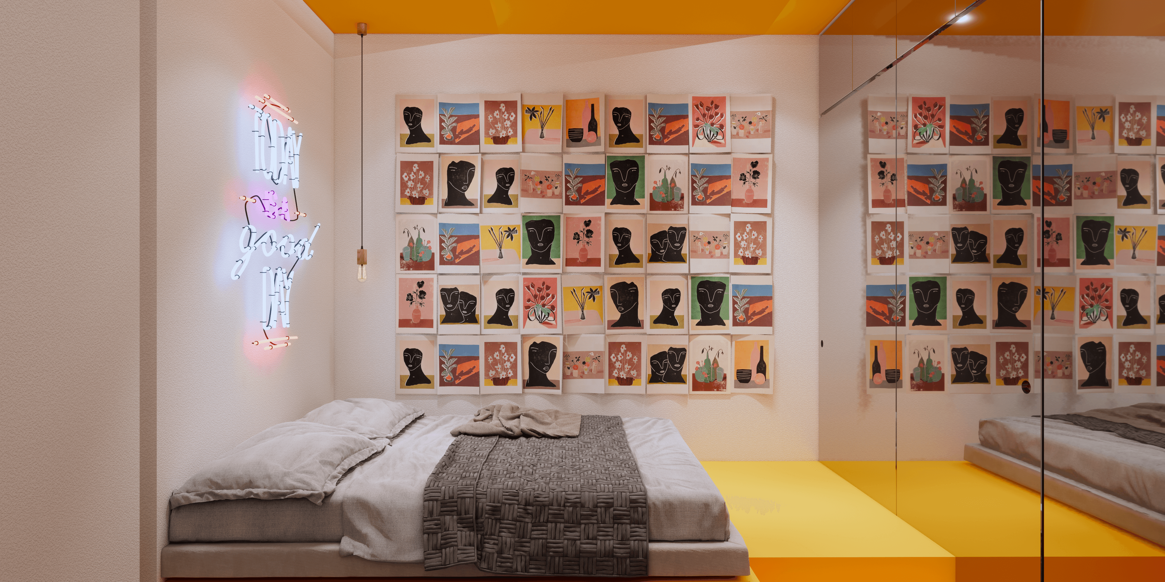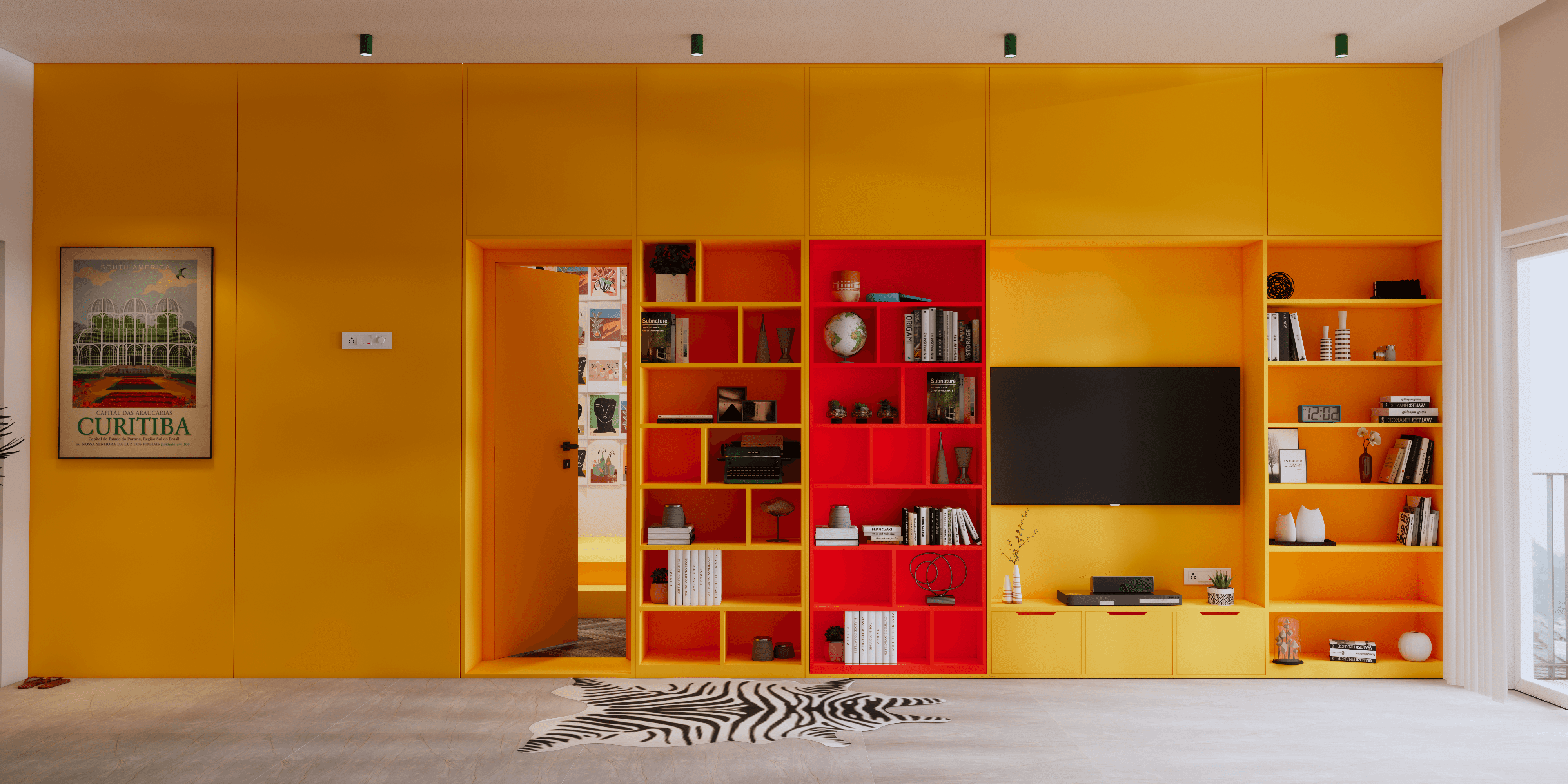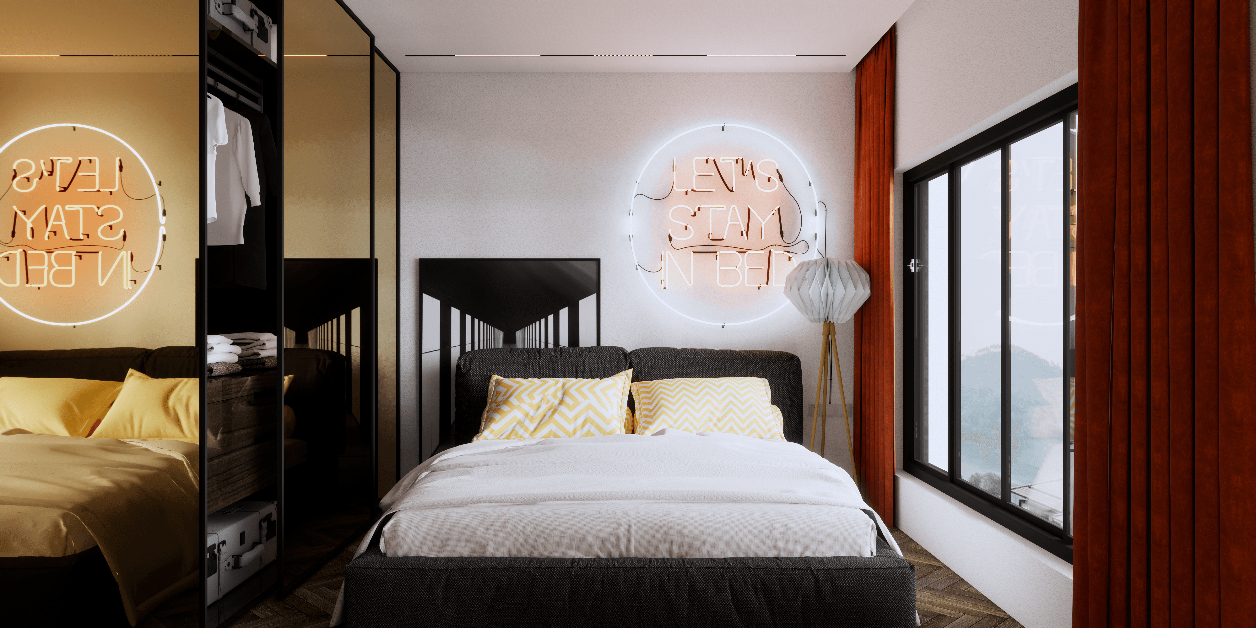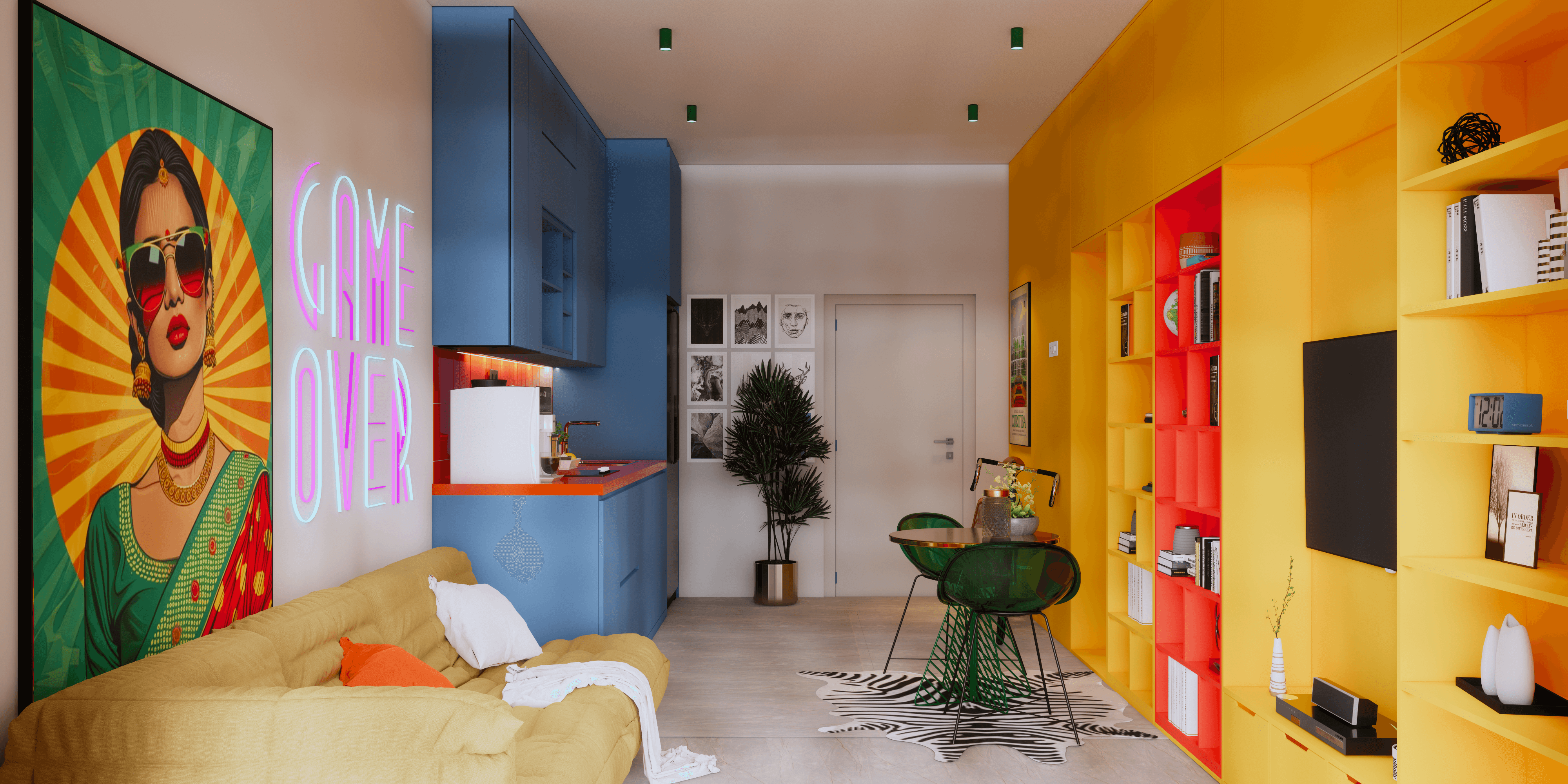 Designed as a compact studio with a big personality, this Air BNB project was driven by the client’s vibrant, easy-going nature and their desire to create a space that feels instantly inviting, playful, and effortlessly “chill.” The brief called for bold colours, relaxed energy, and a layout that maximized both comfort and visual impact—without overwhelming the limited footprint of a studio apartment. Our approach began with understanding how the space would be experienced by different guests. Since a studio relies heavily on first impressions, we focused on creating a strong yet balanced visual identity. The layout was carefully zoned to define living, sleeping, and lounging areas without solid partitions. Furniture placement, colour blocking, and lighting were used as subtle dividers, maintaining openness while giving each zone its own character. Colour became the heart of the design. We curated a lively yet harmonious palette—warm yellows, teal blues, terracotta accents, and soft greens—layered thoughtfully to avoid visual chaos. These tones were paired with neutral base finishes to ground the vibrancy and ensure the space felt welcoming rather than loud. Textures such as patterned tiles, playful upholstery, and matte finishes added depth and personality. To enhance the “chilling” vibe, we introduced relaxed seating, soft lighting, and mood-driven elements like pendant lights, wall art, and indoor plants. Lighting was designed to be flexible—bright and energetic during the day, warm and cozy by night—allowing guests to shift the mood effortlessly. Smart storage and multifunctional furniture were seamlessly integrated to keep the studio clutter-free and functional. Every element was designed to be Instagram-worthy yet practical, reflecting the client’s lively spirit. The result is a studio apartment that feels fun, expressive, and relaxed—a space that instantly connects with guests, mirrors the client’s personality, and offers a memorable stay experience full of colour, comfort, and character.