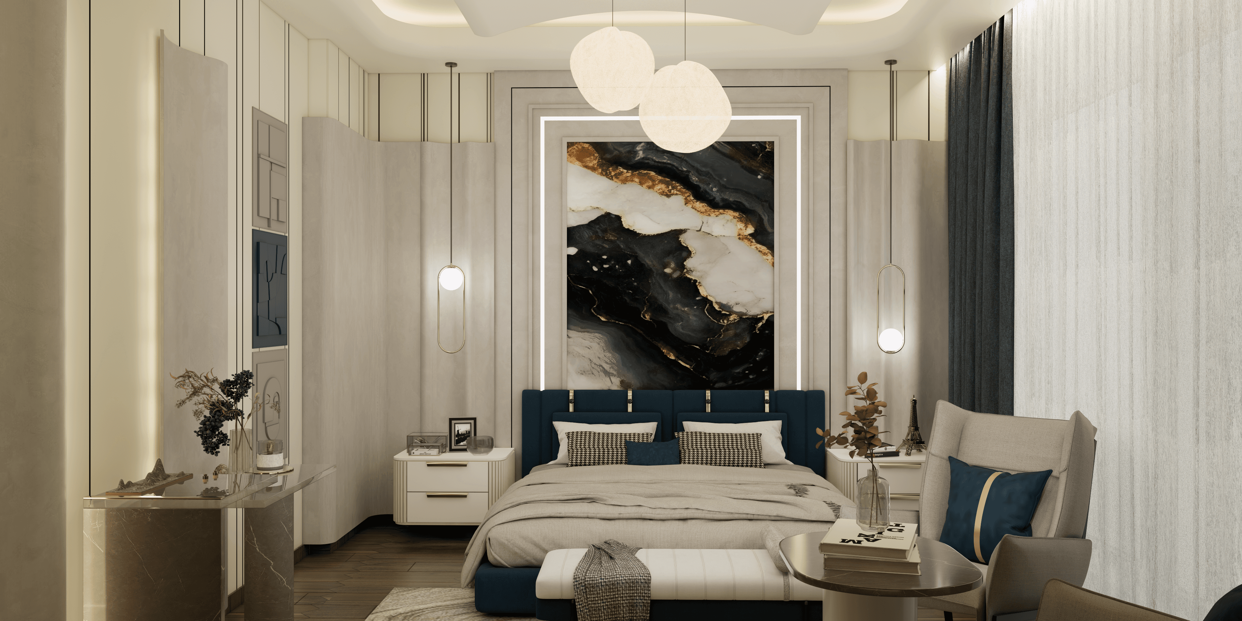 C-21 Mohali is a private residence located in the serene yet evolving cityscape of Mohali, Punjab. The client approached us with a clear vision—interiors that exude contemporary luxury while remaining warm, functional, and deeply personal. They desired a home that reflected global aesthetics, modern comfort, and an effortlessly refined sense of grandeur. Our approach began with establishing a design language that blended sleek minimalism with rich detailing. We curated a neutral base palette—creamy beiges, dove greys, and soft taupes—layered with accents of smoked glass, brushed gold, walnut wood, and Italian marble. The idea was to let materials speak for themselves, giving the space a natural, luxurious rhythm. Each room was treated with its own identity while maintaining a cohesive tone throughout the house. Living areas were designed with open layouts, statement lighting, and plush furniture in textured velvets and suedes. Art pieces and sculptural decor added elegance without overwhelming the simplicity of the design. The master suite was crafted as a calm retreat—featuring a walk-in wardrobe, full-height upholstered headboards, and mood lighting that transitions from day to night. Bathrooms carried a spa-like sophistication with marble cladding, soft ambient lighting, and sleek fixtures. Storage solutions were custom-designed to be both aesthetic and efficient—flush with the architecture, finished in high-gloss laminates, and subtly detailed with metal trims. Contemporary luxury, for us, was about restraint, precision, and attention to detail. Throughout the process, we worked closely with the client, refining every texture, fixture, and finish until it resonated with their taste and lifestyle. The result is a home that feels elevated yet intimate—a modern-day sanctuary where luxury doesn’t shout, but whispers through craftsmanship, composition, and comfort. C-21 Mohali is now a timeless reflection of elegant living in the heart of Mohali.