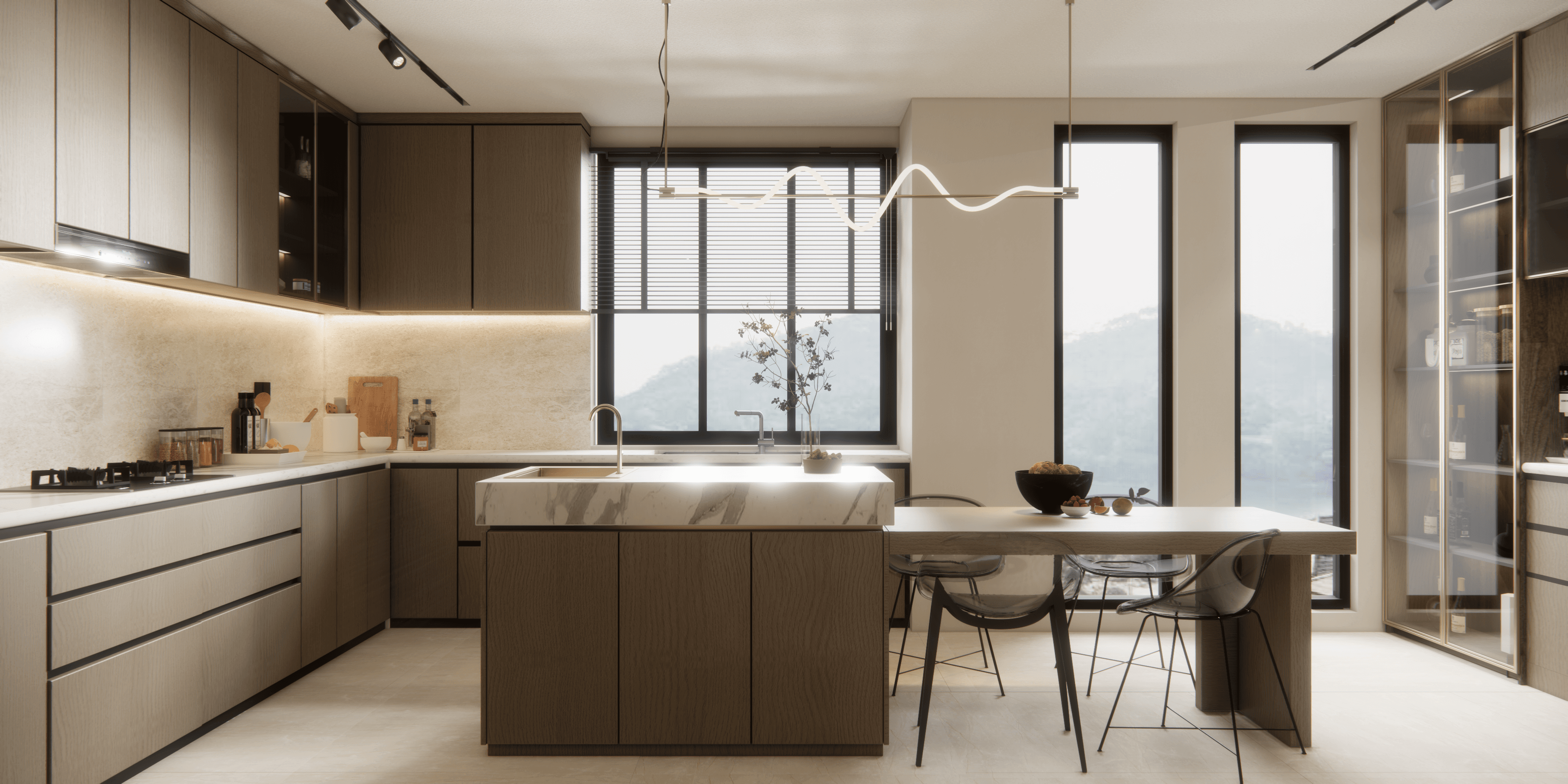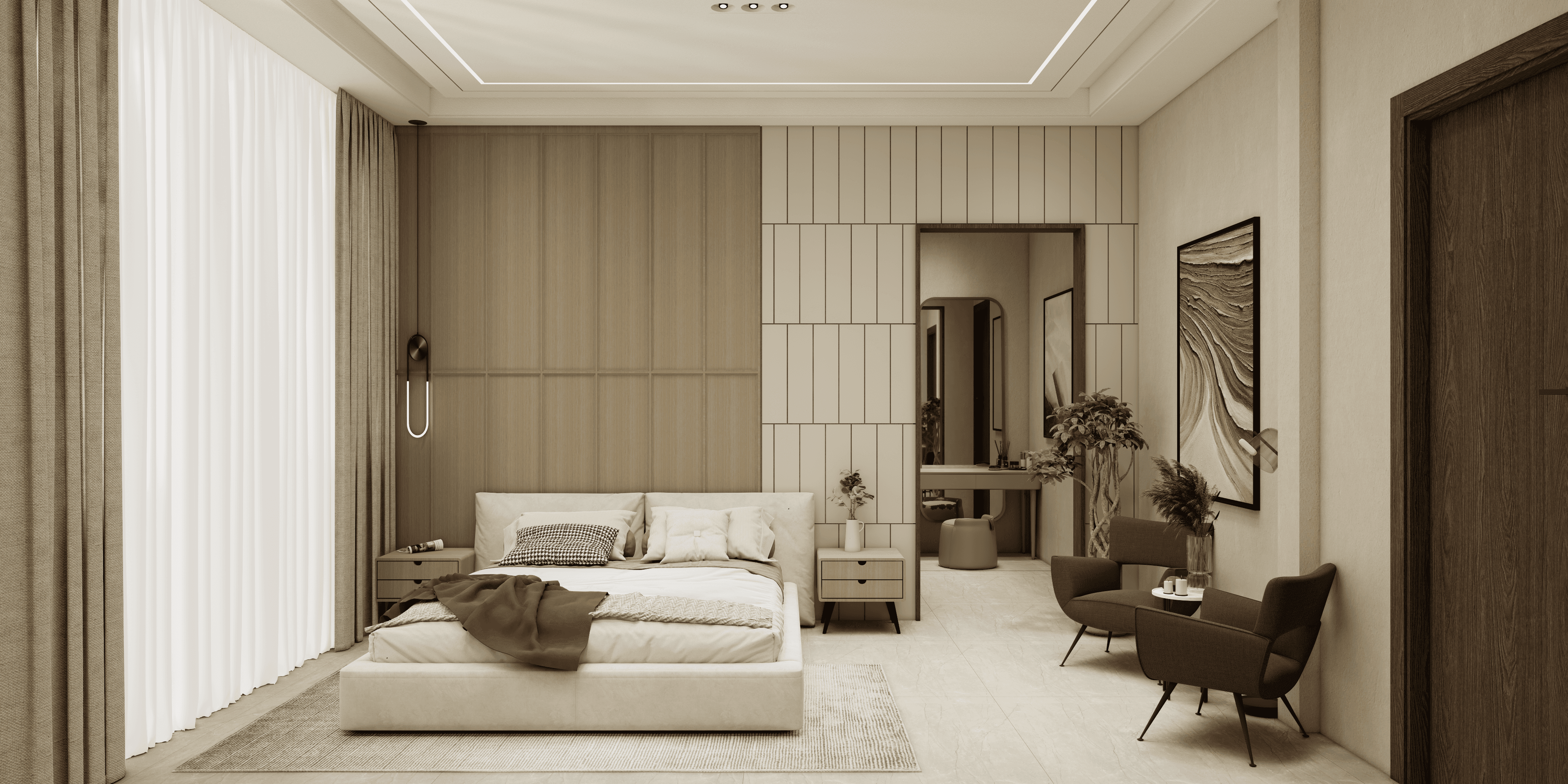 Kumo House is a quiet celebration of imperfection, stillness, and soulful simplicity—born from the client’s desire to embrace the Wabi-Sabi aesthetic in their Madurai residence. From the very beginning, the vision was clear: a home that felt grounded in nature, emotionally resonant, and free from the noise of excess. Our approach was deeply intuitive. We began by studying the principles of Wabi-Sabi—not just as a visual style, but as a philosophy. The idea of finding beauty in the aged, the incomplete, and the imperfect became our guiding light. We chose natural materials that weather gracefully over time: hand-finished plaster walls, reclaimed wood, raw stone, and earthy textiles that invite touch and memory. The colour palette was intentionally subdued—shades of warm greys, clay, sand, and charcoal—allowing the materials to speak for themselves. Lighting was designed to be soft and ambient, casting gentle shadows that brought depth and emotion to every corner. Rather than decorating, we curated. Each object, each surface, had space to breathe. Handcrafted ceramics, woven mats, and aged brass details added quiet character without overwhelming the senses. Spatially, the interiors were designed with slowness in mind. Open layouts, low furniture, and built-in seating nooks invited pause and presence. Storage was concealed, clutter was eliminated, and visual rhythm was maintained through repetition and restraint. The client was deeply involved in the process, resonating with the poetic calmness that slowly took shape. Together, we created a home that doesn’t shout, but whispers—a space that holds space. Kumo House stands as a meditative retreat in the heart of Madurai, embodying the timeless grace of Wabi-Sabi. It is not just designed—it is felt, lived, and gracefully unfinished in all the right ways.